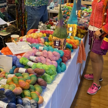 Christoph Neu, selbst gefärbte Wolle, gestrickte Socken, gefilzte Lampen