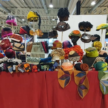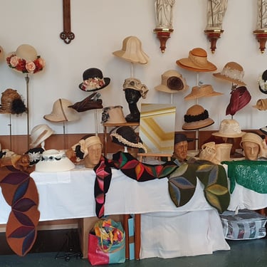 Jakobine Wiertz, selbst designte und gefertigte Hüte und Accessoires dazu